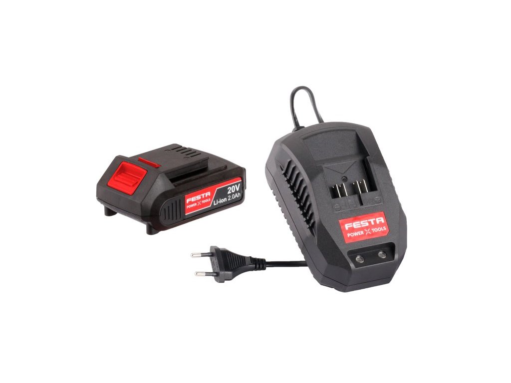 sada nabíječky 2,4 A a Li-ion baterie 2,0 Ah nabíjecí čas baterie 2.0 Ah (28080) - 40 min, 4.0 Ah (28081) - 90 min Li-ion technologie použitá v bateriích FESTA Power x tools nabízí možnost dobíjet baterie kdykoliv - bez snižování jejich kapacity, u Li-ion baterií také dochází k jen velmi pomalému samovybíjení je možné nabíjet i baterie jiných výrobců s kompatibilní paticí baterieDoplňkové parametry