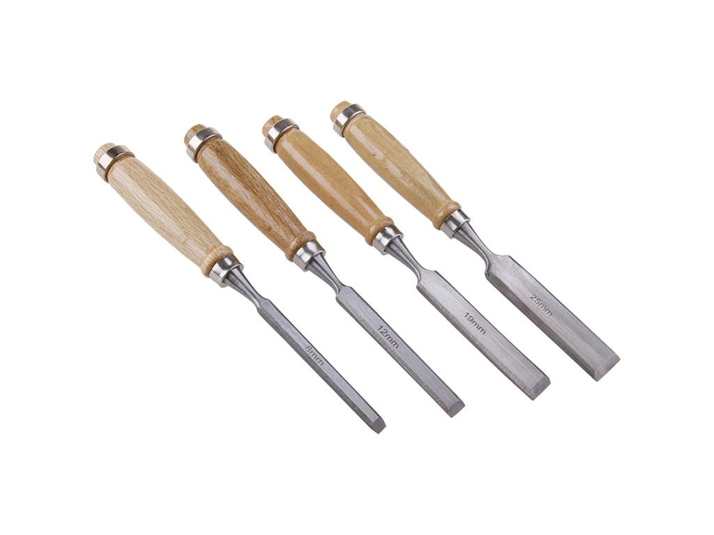 Sada dlátek 4 ks 8, 12, 19, 25 mm pro hobby použití s ergonomickou rukojetí z bukového dřeva, úderová plocha s kovovým kroužkem, která zvyšuje její pevnost.Doplňkové parametry