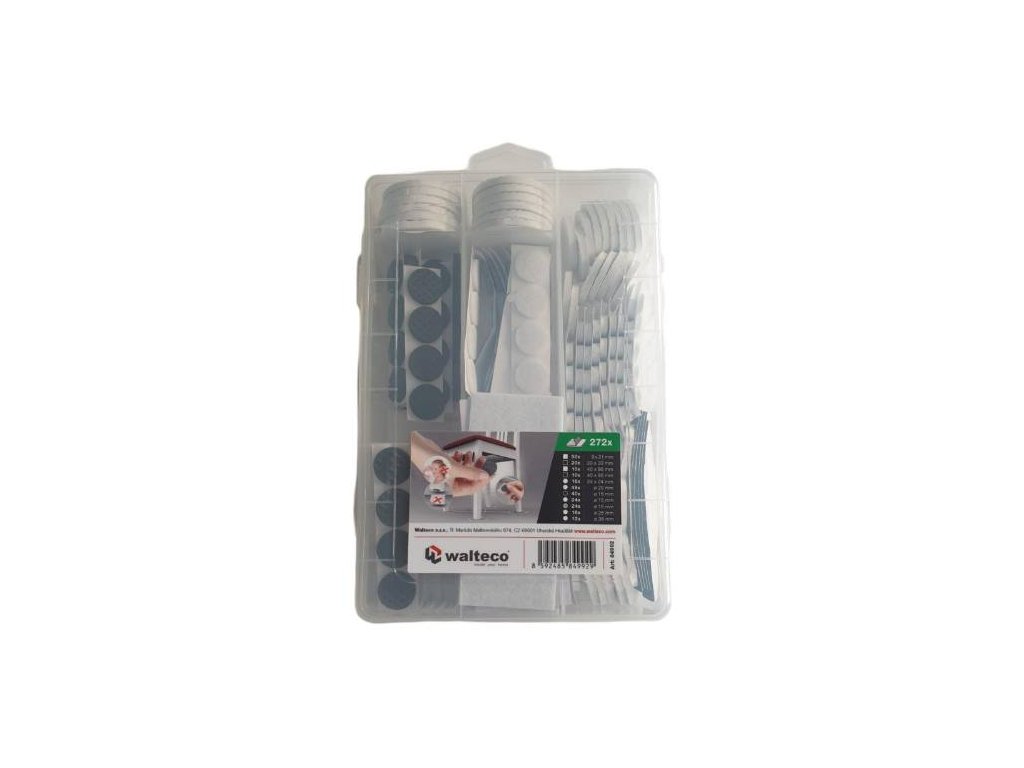- Filcové podložky: 40x90 mm bílá - 10x, 40x90 mm černá - 10x, O 16 mm šedá - 24x, O 20 mm bílá - 48x, O 15 mm bílá - 24x