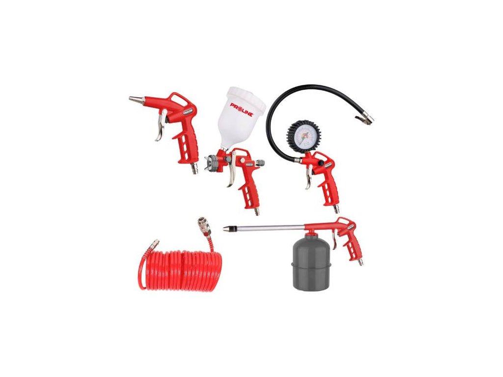 - sada obsahuje: lakovací pistoli s horní nádrží, nafukovací pistole, mycí pistole, ofukovací pistole, PU spirálová pneumatická hadice