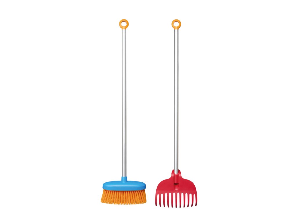 - Úklidová sada Fiskars MyFirstFiskars obsahuje smetáček a hrábě, jejichž velikost je vhodná pro dětské ruce.