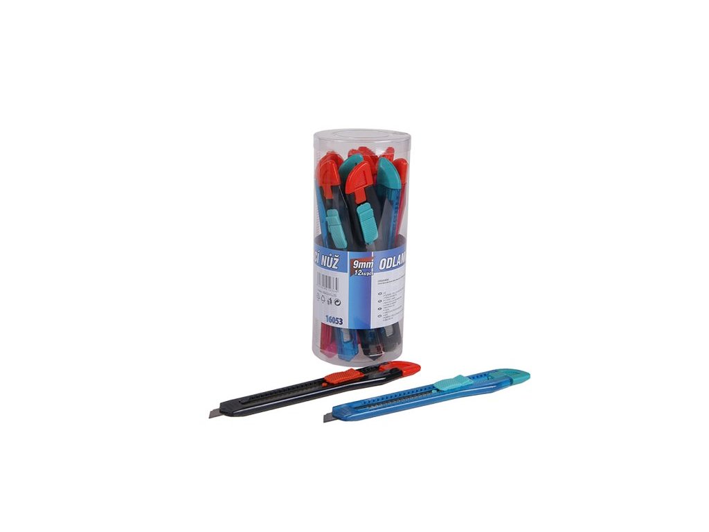 Sada plastových odlamovacích nožů 9mm, 12ksů, plastová kruhová dóza, barevný mix.Doplňkové parametry