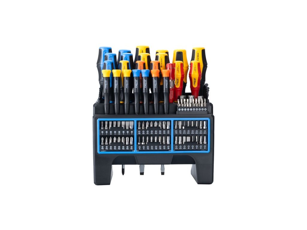 profesionální sada šroubováků, bitů a minibitů, adapterů a L-klíčů inbus - ALL IN ONE univerzálnost osazení této sady, nabizí široké spektrum jejího využití dříky šroubováků, bity i adaptéty na 6ti hrané vruty z kvalitní legované oceli S2, ergonomické rukojeti, certifikované elektrošroubováky minišroubováky a minibity s adapterem pro jemnou mechaniku L-klíče inbus v metrické i palcové (inchové) variantěDoplňkové parametry