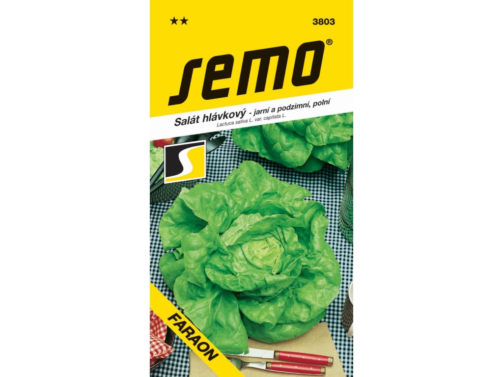 FARAON - raný polní salát s vysokou odolností proti vybíhání. Je určený pro jarní výsadbu i výsev do 20. dubna nebo pro podzimní pěstování s výsevem v červenci. Tvoří větší, žlutozelené hlávky a lze jej označit za nevybíhající žlutý KRÁL MÁJE.