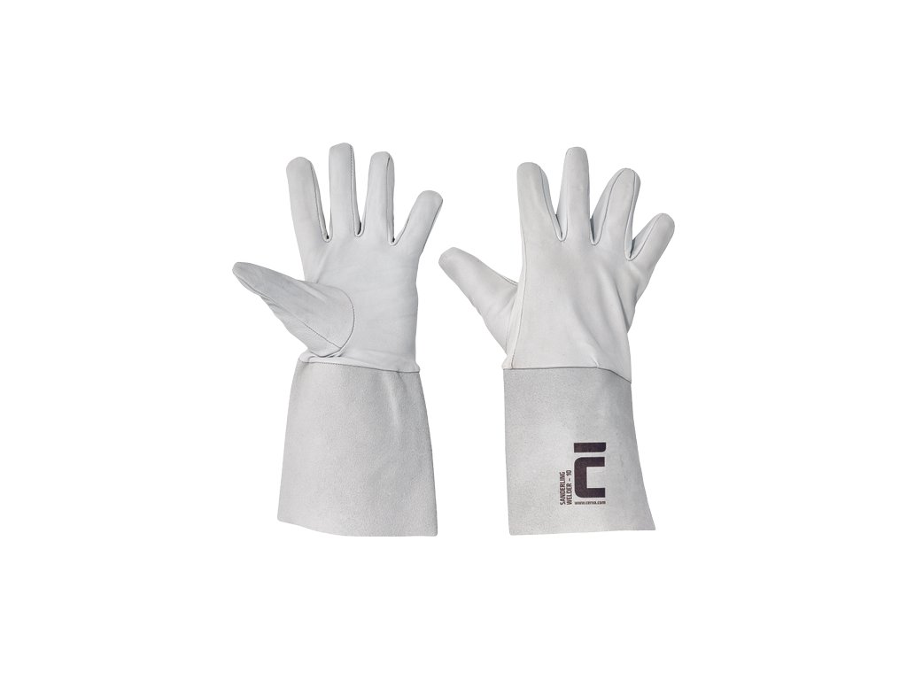 celokožené rukavice z ovčí lícové kůže s 15 cm širokou manžetou z hovězí štípenky • certifikát: svářečské práce - typ BDoplňkové parametry