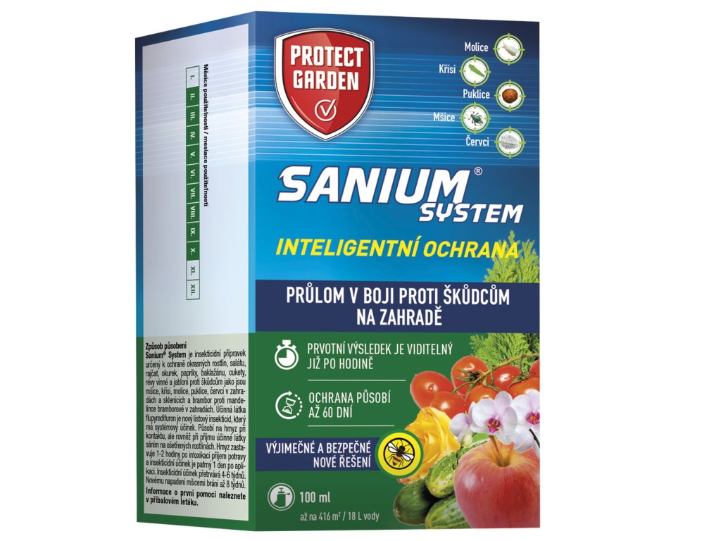 Sanium® System je insekticidní přípravek určený k ochraně okrasných rostlin, salátu, rajčat, okurek, papriky, baklažánu, cukety, révy vinné a jabloní proti škůdcům jako jsou mšice, křísi, molice, puklice, červci v zahradách a sklenících a brambor proti mandelince bramborové v zahradách.