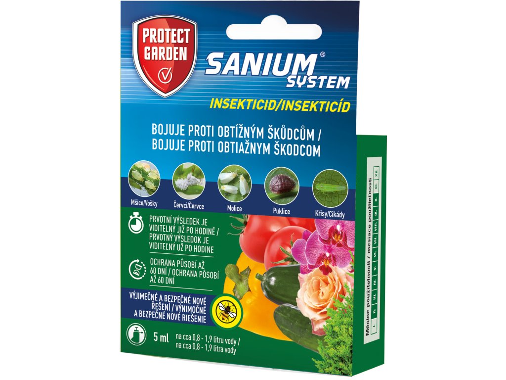 Sanium® System je insekticidní přípravek určený k ochraně okrasných rostlin, salátu, rajčat, okurek, papriky, baklažánu, cukety, révy vinné a jabloní proti škůdcům jako jsou mšice, křísi, molice, puklice, červci v zahradách a sklenících a brambor proti mandelince bramborové v zahradách.