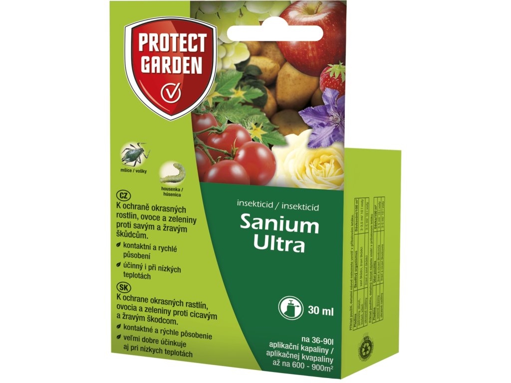Deltamethrin, účinná látka přípravku Sanium Ultra, je světlostálý syntetický pyrethroid. Hubí škůdce jako dotykový a požerový jed s významným repelentním účinkem proti celé řadě škůdců, zejména mšicím a částečným ovicidním účinkem. Svilušky nehubí. Nemá systémový účinek, proto je třeba, aby byly při aplikaci rovnoměrně zasaženy všechny části rostlin.