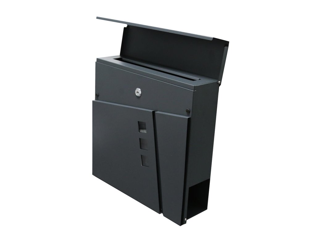 Schránka poštovní TILES 370 x 370 x 105 mm, ANTR. rozměry: 370 x 370 x 105 mm barva: antracit - venkovní poštovní schránka na dopisy, noviny, časopisy, letáky, apod. - vhoz shora - šroubky a hmoždinky jsou součástí balení - jednoduchá montáž - připevnění skrz zadní stěnu - cylindrický zámek, 2 klíče - ve spodní části tubus vhodný pro vkládání novin či letáků Poštovní schránka na dopisy, noviny apod., na Váš plot či dům. Včetně šroubů a hmoždinek. Jednoduchá montáž.Doplňkové parametry