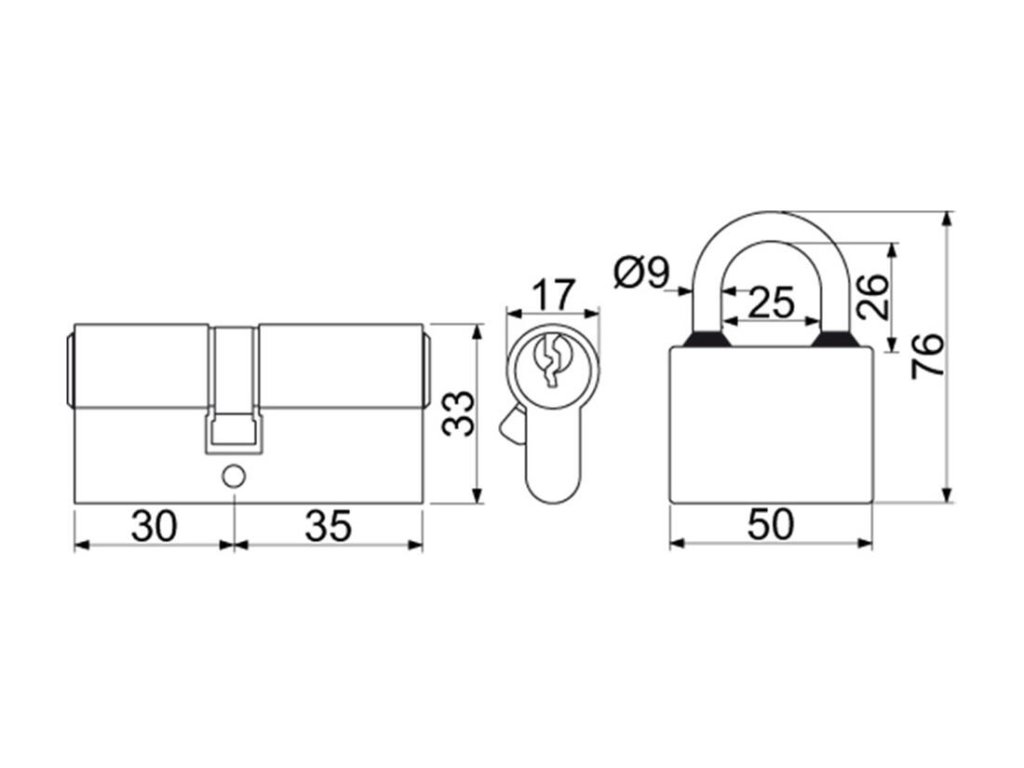 set na společný uzávěr 2x vložka 30+35Ni a 1x visací zámek 52 RICH