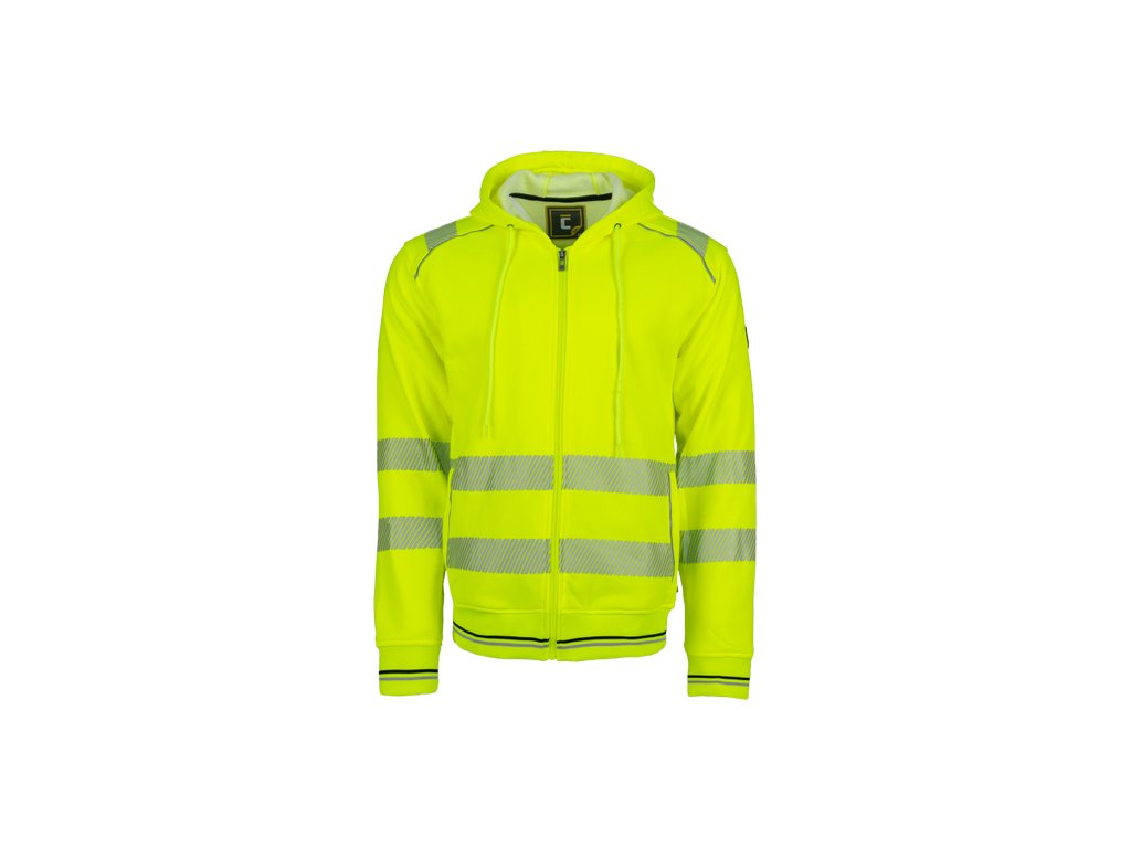 • celopropínací HI-VIS mikina s kapucí ze směsového úpletu bavlny a polyesteru zevnitř nepočesaná • dvojitá kapuce s kontrastním úpletem v barvě zipu a dekorativního prošití • pružné náplety na rukávech a spodním obvodu • tištěné reflexní segmentované 5 cm pruhy okolo pasu, rukávů a přes ramenaDoplňkové parametry