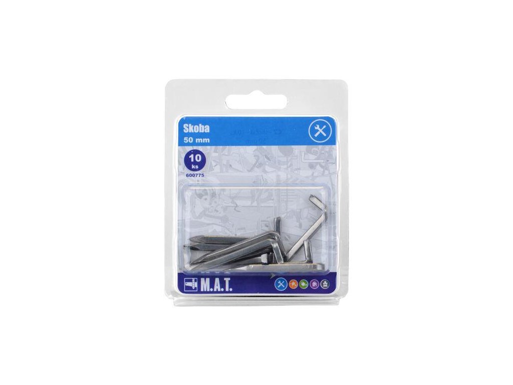 délka: 50 mm lesk 10 ks Skoba 50 mm slouží k zavěšování předmětů a břemen na kolmých plochách jako jsou zdi nebo bytové příčky.Doplňkové parametry