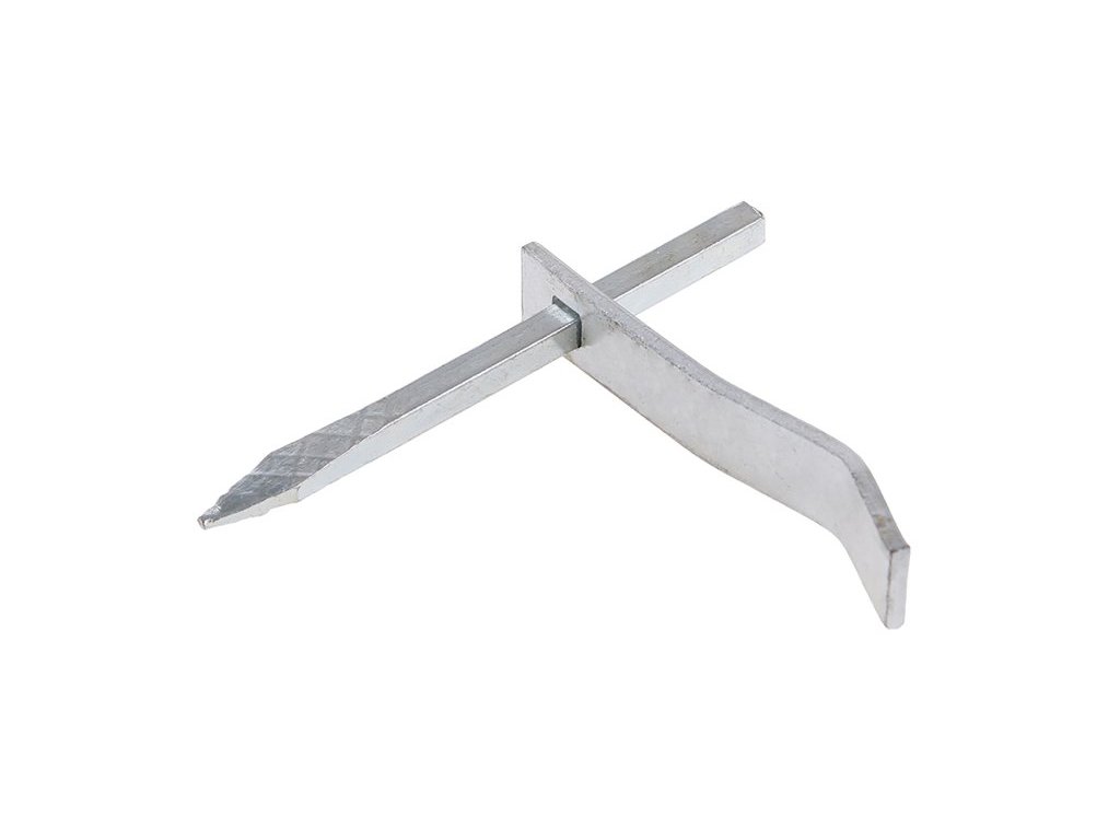 Zednická skoba - pozinkovaná, délka trnu 140 mm, použití : k uchycení desek, příček na kolmých zdech,kulátý dřík umožňuje nastavení plochého ramínka do libovolné pozice.Doplňkové parametry