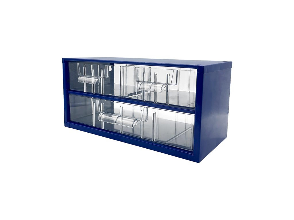 Skříňka 2 velikosti, 2 střední, 1 velká zásuvka, 30,5 x 15 x 15,5 cm, kov. MO. rozměry: 30,5 x 15 x 15,5 cm 2 střední zásuvky 1 velká zásuvka materiál: kov barva: modrá Kovové organizéry TOKOZ jsou ideálním řešením pro přehledné a bezpečné uložení drobného materiálu, součástek i nářadí. Díky robustní konstrukci a čirým zásuvkám nabízejí dlouhou životnost a snadnou orientaci. Hlavní přednosti: - pevný korpus z ocelového plechu s odolným práškovým lakem - čiré plastové zásuvky s možností doplnění přepážek - variabilní instalace - volně stojící, stohovatelné, k zavěšení na zeď - modulární systém – možnost kombinace různých velikostí zásuvek - plynulé vysouvání a stop systém proti vypadnutí - vhodné do dílen, garáží i výrobních provozůDoplňkové parametry