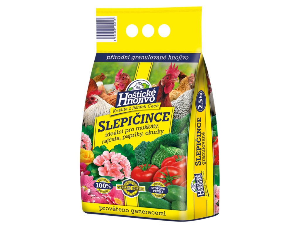 Hoštické hnojivo SLEPIČINCE je určeno k širokému užití jak v zahradě, tak i při pěstování okrasných rostlin v truhlících a v jiných nádobách. Rovněž je vhodné k základnímu vyhnojení půdy buď na jaře, nebo při její podzimní přípravě. Hnojivo se aplikuje na povrch zeminy rozhozem a pak se mírně zapraví do půdy a dostatečně zavlaží.