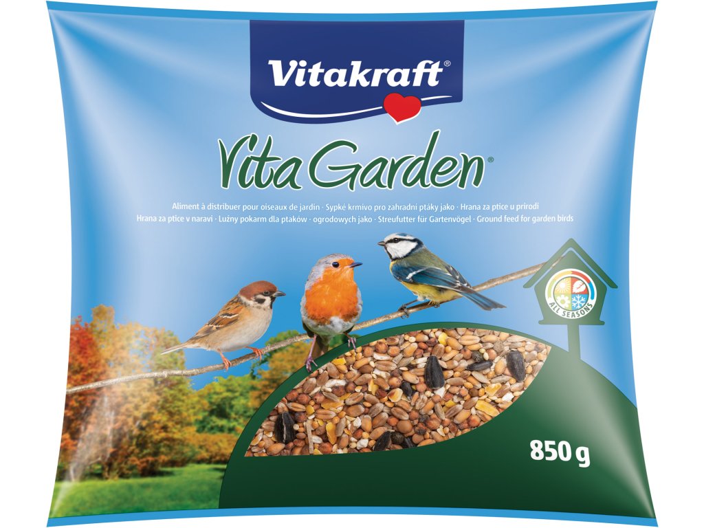 Kompletní krmivo pro zahradní ptactvo. Krmivo Vita Garden obsahuje lahodná semena, obilná zrna, slunečnicová semínka a vitamíny. Je cenným doplňkem stravy volně žijících zahradních ptáků. Vynikající celoroční krmivo pro mnoho ptačích druhů. Perfektní do krmítek nebo na rozsypání po zemi. Receptura bez cukru. Neobsahuje umělá barviva ani konzervační látky.