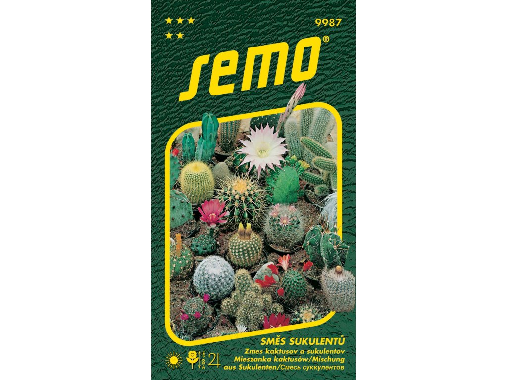 Směs sukulentních rostlin a kaktusů různých tvarů a velikostí. Vyséváme do speciálního substrátu ve složení: 1/3 kompost, 1/3 písek, 1/3 rašelina. Po vzejití přepikýrujeme a následně vysázíme do květináčků. Rostliny se uplatní při výzdobě bytů.