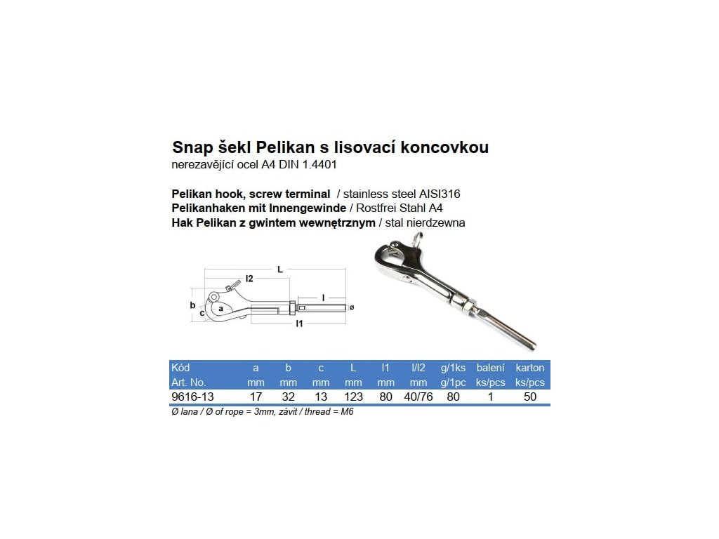 | Materiál: | nerez A4 (AISI 316) |