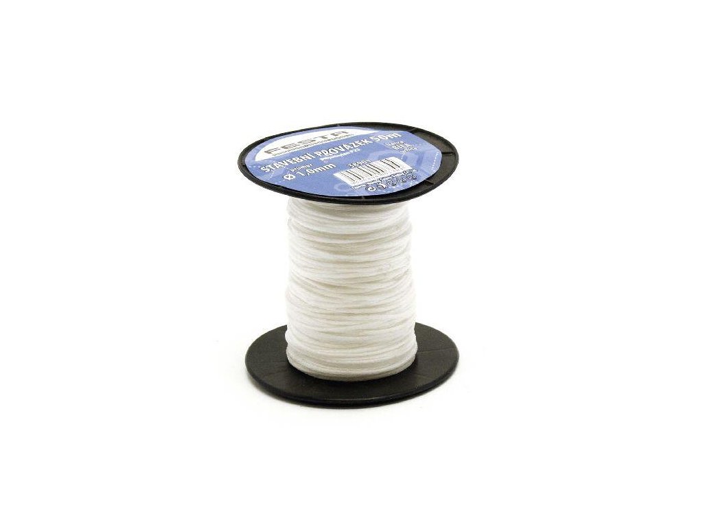 Zednický provázek FESTA rozměry: 1,7 mm x 50 m BÍ materiál: PE ( polyethylen ), odolný proti vodě, splétaný - vynikající vlastnosti v tahu, cívka - návin 50 m Provázek najde své využití ve stavebnictví, v domacnosti, na zahradě,...Doplňkové parametry