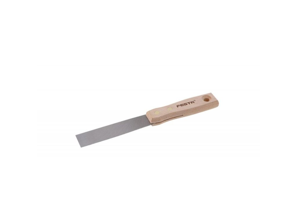 Špachtle FESTA. šířka břitu: 30 mm materiál: ocel, dřev. rukojeť Klasická špachtle vhodná jak na oškrabování zdí tak na vyspravování prasklin, prohlubní, děr a dalších mechanických vad.Doplňkové parametry