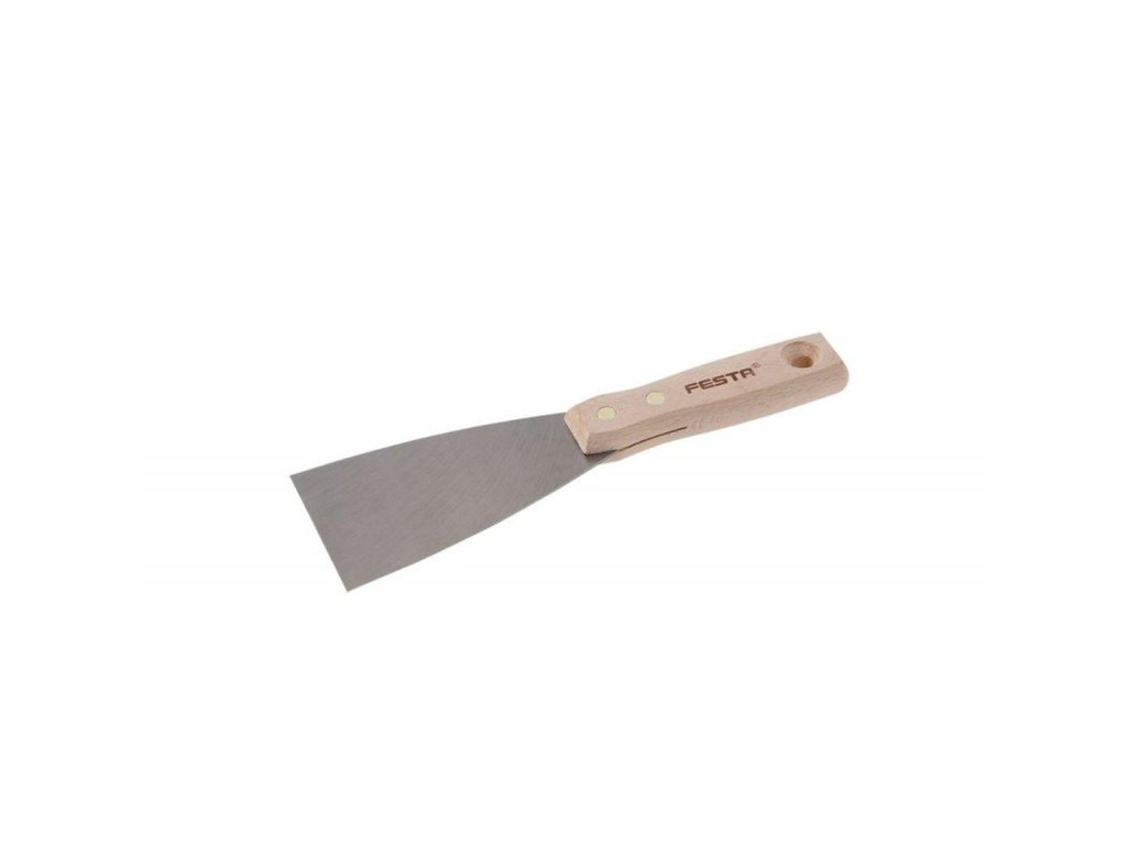 Špachtle FESTA. šířka břitu: 80 mm materiál: ocel, dřev. rukojeť Klasická špachtle vhodná jak na oškrabování zdí tak na vyspravování prasklin, prohlubní, děr a dalších mechanických vad.Doplňkové parametry