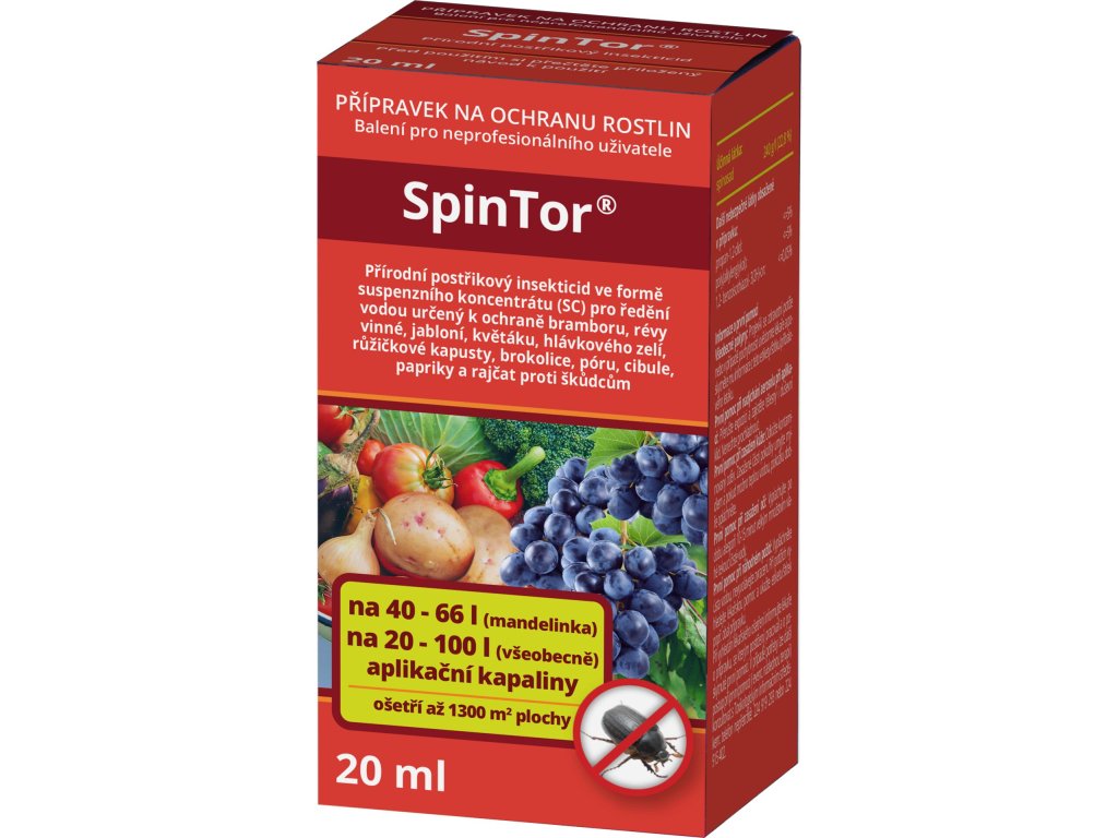 Spintor je přírodní postřikový insekticid ve formě suzpenzního koncentrátu pro ředění vodou určený k ochraně brambor, révy vinné, jabloní, květáku, hlávkového zelí, růžičkové kapusty, brokolice, póru, cibule, papriky a rajčat proti škůdcům. Spintor je požerový a kontaktní insekticid. Příjem účinné látky škůdci nastává příjmem potravy i přímým kontaktem s látkou. Působení účinné látky spočívá v ovlivňování aktivity neuronů hmyzích jedinců. Účinek nastává již po několika hodinách, následně dochází k úhynu hmyzích škůdců. Spintor účinkuje na škůdce z řádu motýlu, brouků, dvoukřídlých a třásnokřídlých, nepusobí na savý hmyz (mšice).