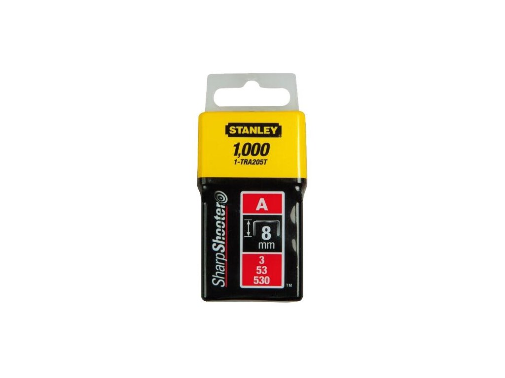 Spony 8 mm typ A ( 1000 ks ) STANLEY Rozměry: 8 mm Balení: 1000 ks Materiál: galvanizovaná ocel Spony jsou vhodné k použití na lehčí domácí práce, upevňování fólií apod.Doplňkové parametry