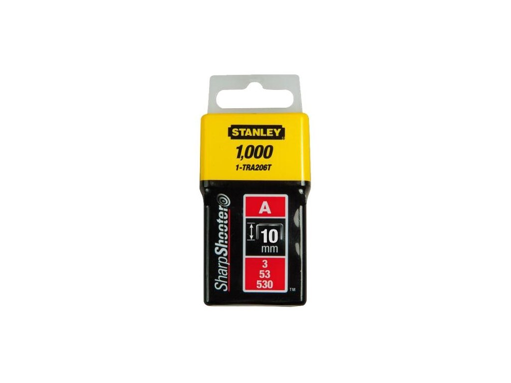 Spony 10 mm typ A ( 1000 ks ) STANLEY Rozměry: 10 mm Balení: 1000 ks Materiál: galvanizovaná ocel Spony jsou vhodné k použití na lehčí domácí práce, upevňování fólií apod.Doplňkové parametry