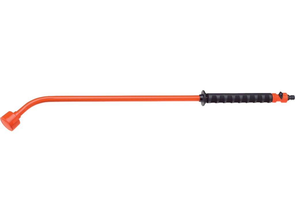 Multifunkční postřikovací tryska na prodloužené hliníkové rukojeti umožňuje nastavení rozstřiku a dosažení i vzdálenějších míst. Délka: 92 cm.