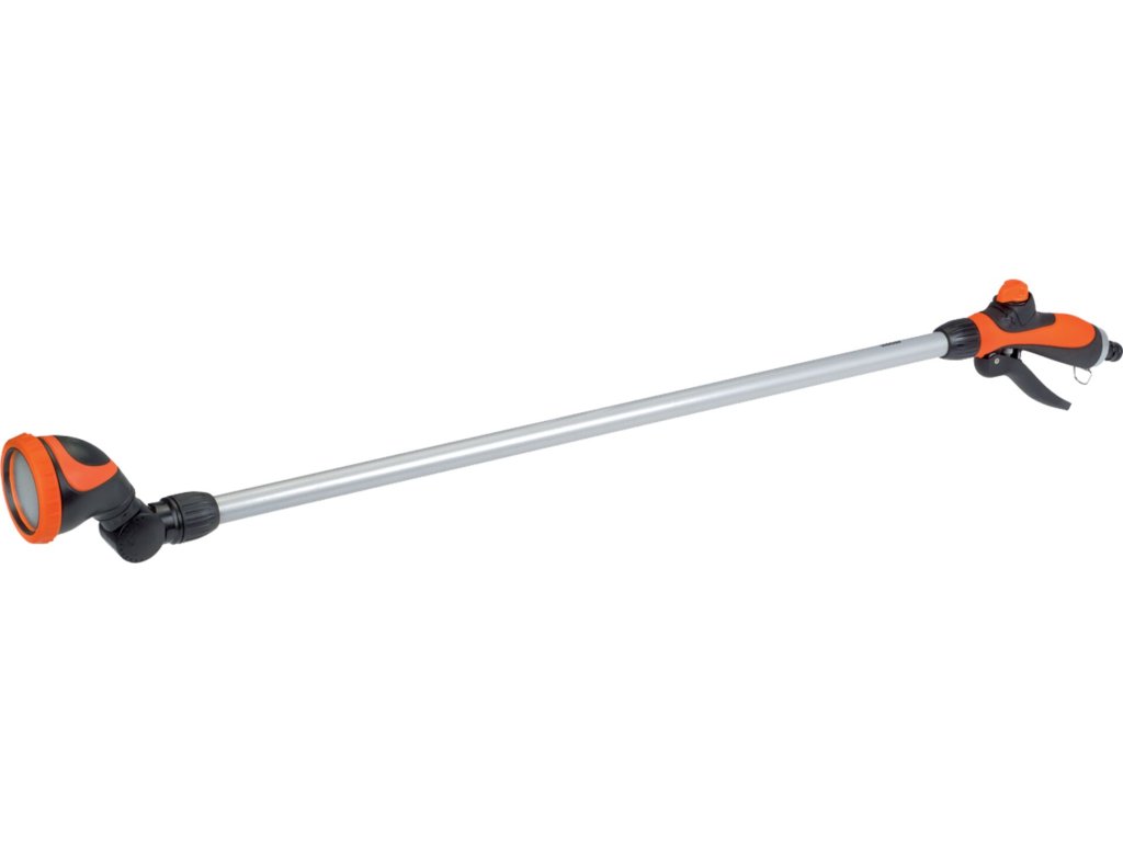 Sprchová postřikovací tryska na prodloužené hliníkové rukojeti s ohebnou hadicí umožňuje nastavení rozstřiku a dosažení i vzdálenějších míst. Otočná o 180 st. Délka: 95 cm.