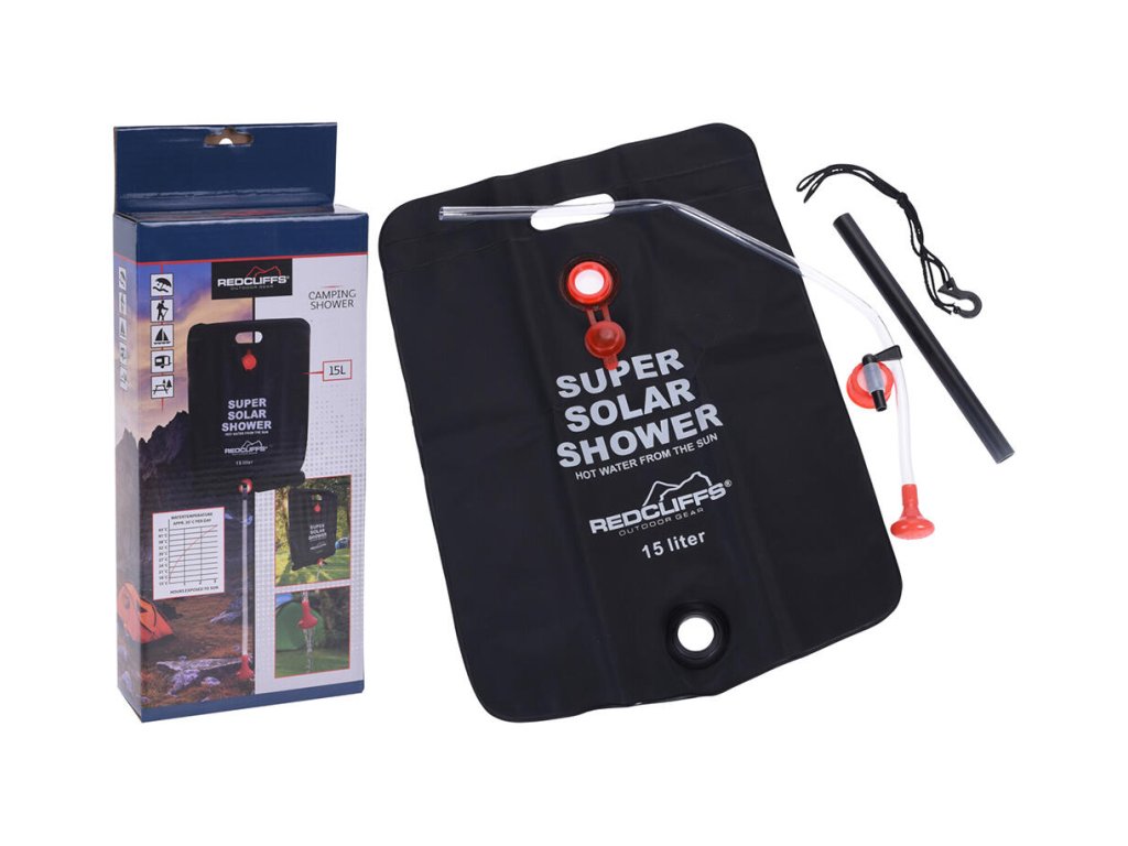 Sprcha solární 15 l, závěsná. objem: 15 l Solární závěsná sprcha 15 l, která je ideální pro kempování, nebo i pro použití doma na zahradě. Sprcha dokáže ohřát vodu až na 40 - 60° C, dle intenzity slunečního záření.Doplňkové parametry