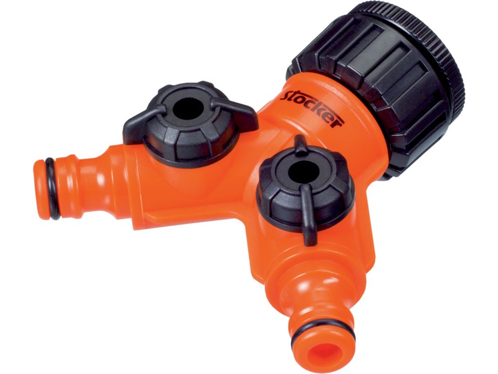 Šroubení 1/2", 3/4" pro Quick Click systém STOCKER mezi kohoutek a rychlospojku s dvoucestným ventilem. Jednoduchá manipulace bez nářadí. Používá se pro připojení dvou hadic s kohouty nebo pro použití zařízení s 2 porty. Se dvěma nastavitelnými výstupy. Baleno v blistru s eurozávěsem.