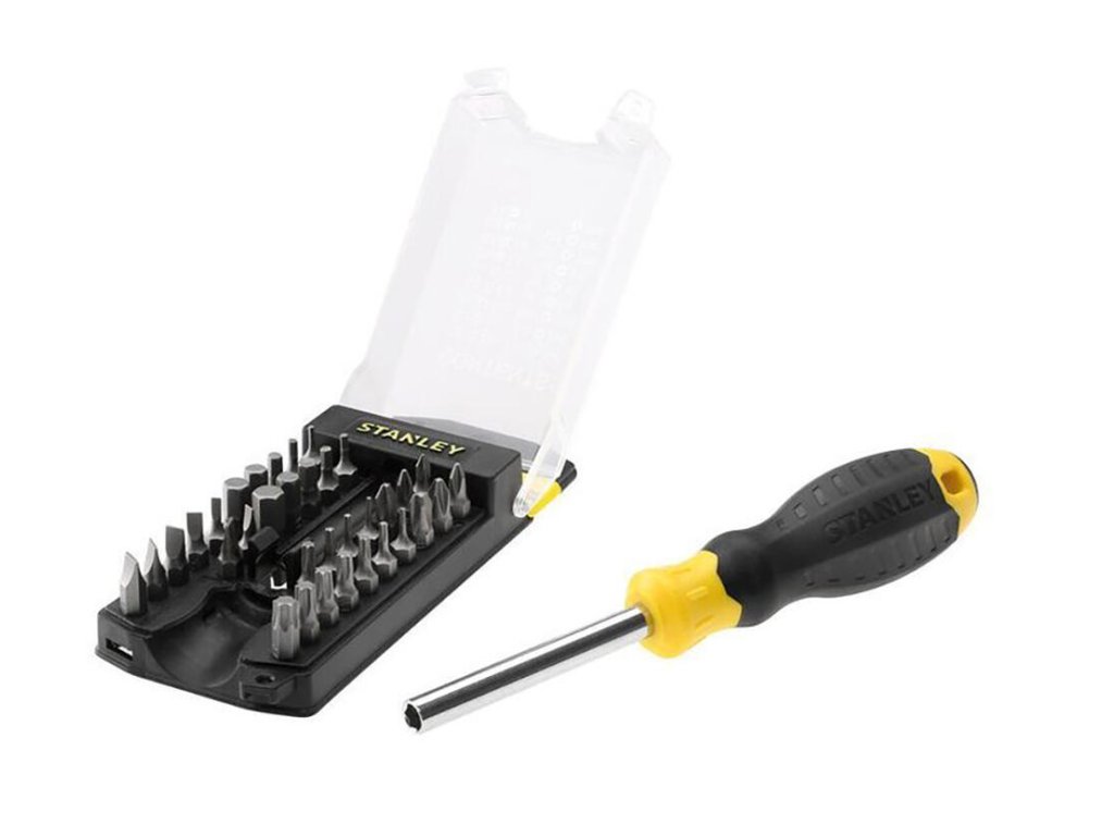Šroubovák multibitový 35díl., STHT0-70885 STANLEY. 35dílná sada nástavce s bity obashuje: Torx : T5, T6, T7, T8, T10, T15, T20, T25, T27, T30, T40 imbus: 1,5mm, 2mm, 3mm, 4mm, 5mm, 2x 6mm, 7mm, 8mm plochý : 3mm, 3.5mm, 4.5mm, 5.5mm, 6mm, 7mm Philips : PH0, 2x PH1, 2x PH2, PH3Doplňkové parametry