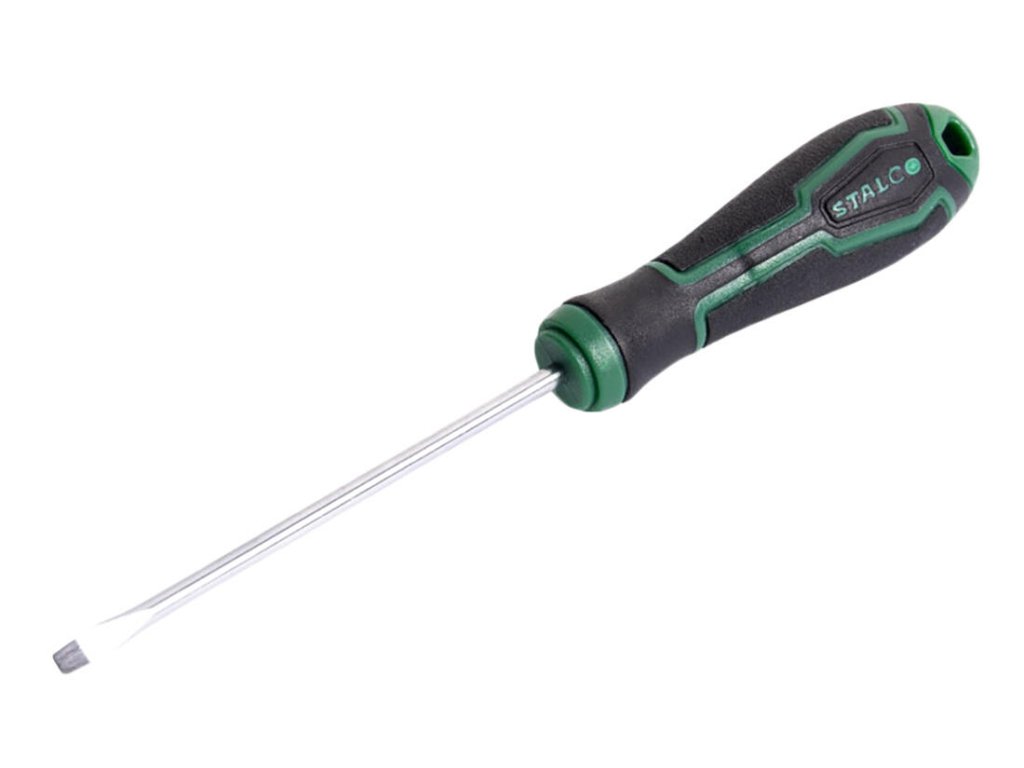 Šroubovák plochý 5 x 100 mm STALCO. rozměry: 5 x 100 mm materiál: ocel, plast Plochý šroubovák je určený pro jednoduchou montáž a opravy v domácnosti.Doplňkové parametry