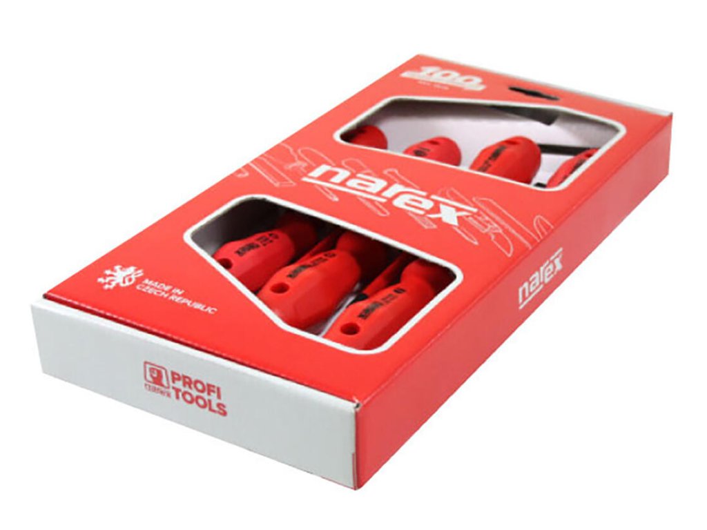 Šroubovák SLIM el. sada 7díl. PL, PH, PZ, 8552-02, 1000 W. sada obsahuje: - 3 x plochý šroubovák: 2,5 x 75 803401 4,0 x 100 803405 5,5 x 125 803406 - 2 x Phillips šroubovák: PH1 x 80 803501 PH2 x 100 803502 - 2 x Pozidriv šroubovák: PZ1 x 80 803601 PZ2 x 100 803602 dřík: • zušlechtěná vysoce legovaná ocel • povrch černěn • izolační obstřik SLIM rukojeť: • ergonomická s šestihranným průřezem • odolné vůči oleji a benzínu • tvar brání samovolnému pohybu při odložení Řada PROFI LINE ELEKTRO SLIM - šroubováky ploché + Phillips. Určeno pro práci pod napětím v elektrotechnických oborech. Šroubováky splňují požadavky EN 60900:2004 (IEC 60900:2004). Každý šroubovák je zkoušen na průraz elektrickým proudem ve vodní lázni při napětí 10 000 V. Je zaručena bezpečná práce až do napětí 1 000 V.Doplňkové parametry