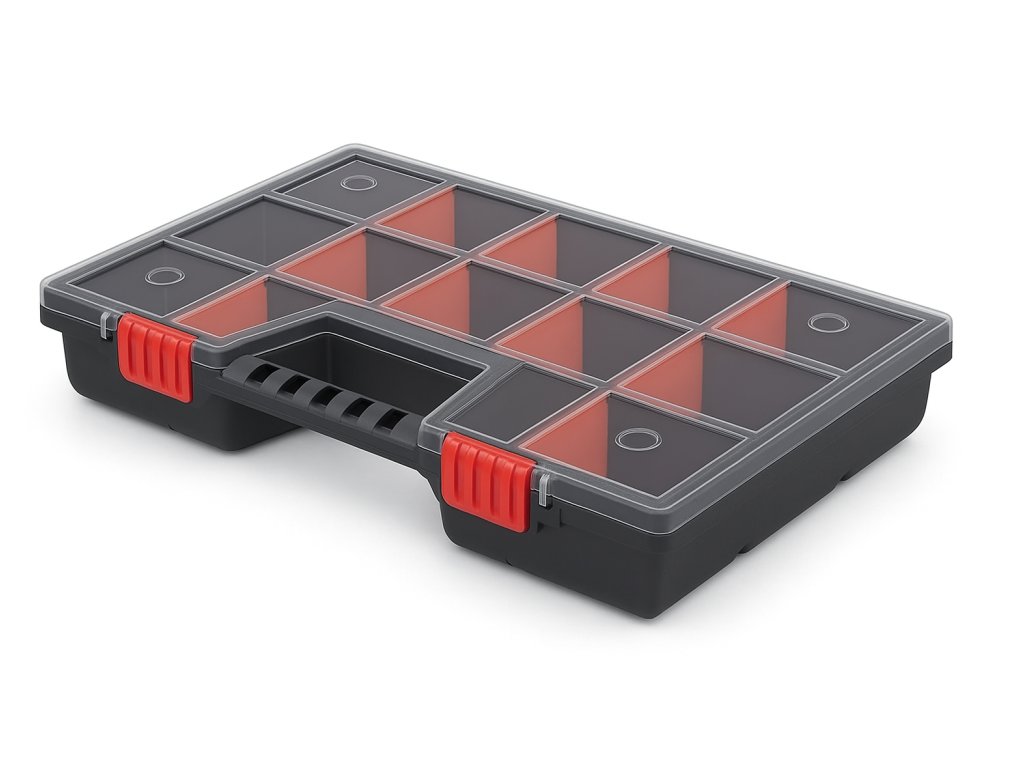 Stavební organizér je bezvadná věc, pokud patříte mezi ty, kteří mají rádi ve věcech pořádek a mají rádi, když má každá věc své místo. Ušetří čas při hledání různých drobných, nebo menších předmětů, protože tady můžete mít všechno přehledně roztřízené. Produkt se hodí, jak pro kutily, tak pro profesionály.