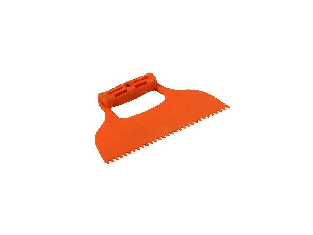Stěrka plastová rozměry : 235 mm (zuby 4 x 6 mm) materiály: ergonomická rukojeť, kvalitní plast Stěrka se využívá ve štukatérství, malířství, zednictví, je vhodná pro roztírání lepících malt, tam kde je potřeba zajistit souměrnou vrstvu lepidla - hmoty.Doplňkové parametry