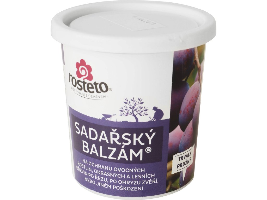 Sadařský balzám je krémovitá hmota na bázi vodné disperze akrylátového kopolymeru (43 - 46%)a pasty železitohlinitého pigmentu (0,03 - 0,5%) určená na ochranu ran. Na rány při očkování a roubování lze použít pouze za podmínky, že při důkladném stažení ploch srůstu, nemůže mezi ně proniknout. Sadařský balzám se v neředěné formě snadno nanáší na začištěné poraněné plochy co nejdříve po jejich vzniku, a to stěrkou, štětečkem nebo dřívkem, při teplotách nad 0 stupňů C ve vrstvě cca 1 mm, která zaschne, v závislosti na teplotě a vlhkosti vzduchu, během několika hodin. Je-li třeba, lze nános opakovat. Podklad může být i mírně vlhký. Do zaschnutí je třeba nános chránit před deštěm. Obvykle zatíráme rány větší než 1 cm2. Při dodržení těchto podmínek lze použít celoročně. Sadařský balzám vytvoří po zaschnutí elastický, omezeně prodyšný, nelepkavý film, odolávající působení povětrnosti. Ten chrání rány před nadměrným vysycháním, urychluje tvorbu kalusu a tím zacelení ran. Výrazně omezuje pronikání dřevokazných hub do rány.