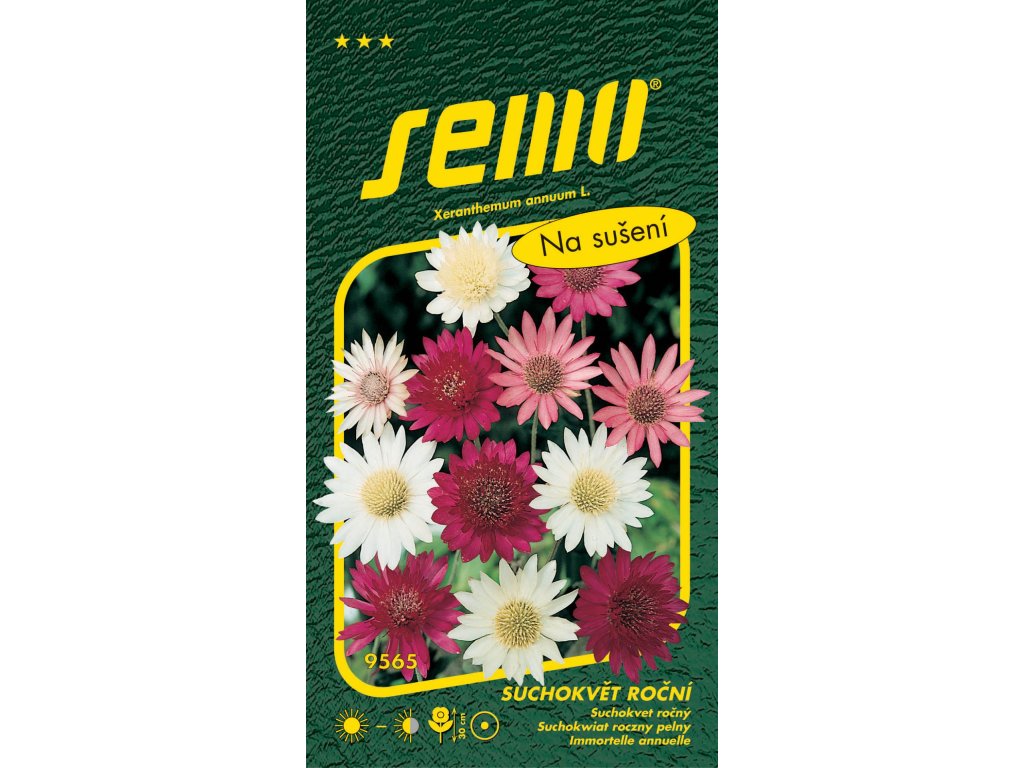 Rychle rostoucí letnička s kopinatými, stříbřitými listy. Suchomádřité úbory květů rozkvétají během léta. Směs plných bílých, růžových a fialových květů, výška 30cm. Je vhodná na záhonové výsadby, na řez květů a zejména na sušení (fialové úbory). Vyséváme brzy z jara zásadně přímo na stanoviště. V teplejších oblastech je možný podzimní výsev. Vyžaduje plné slunce a lehčí půdu.