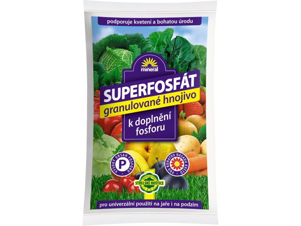 Superfosfát je univerzální fosforečné hnojivo určené k základnímu podzimnímu i jarnímu hnojení před setím či výsadbou. Vhodné pro všechny druhy kultur. Lze jej též přidávat do kompostů a do močůvky. Vodorozpustná forma fosforu umožňuje rychlý účinek superfosfátu.