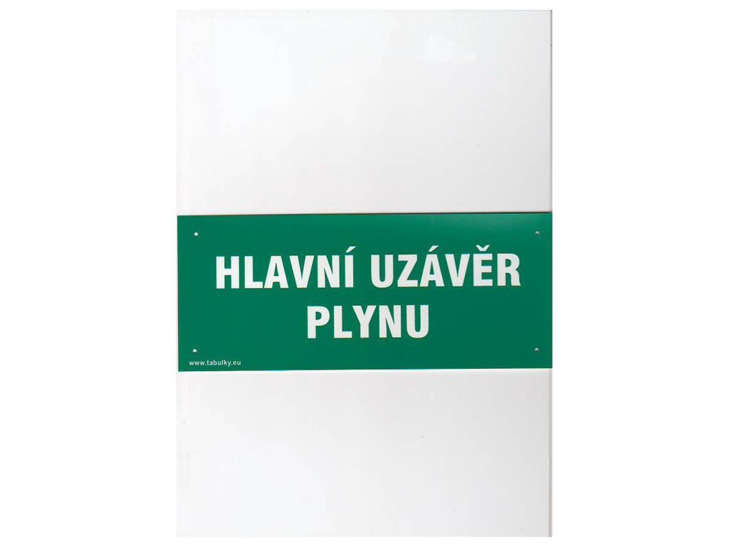Tabulka - HLAVNÍ UZÁVĚR PLYNU 210 x 87 mm, PH. rozměry: 210 x 87 mm materiál: plast Bezpečnostní tabulka, jejímž účelem je opatření a snížení rizik.Doplňkové parametry