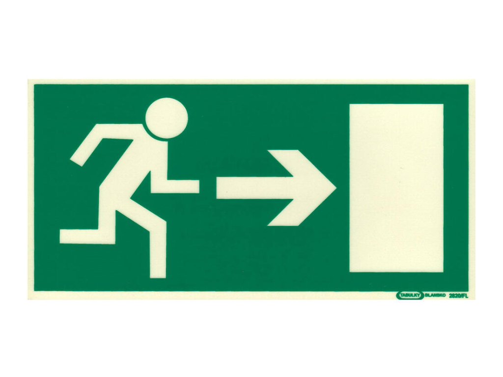 Tabulka - ÚNIKOVÝ VÝCHOD VPRAVO 210 x 105 mm, PH, fotoluminiscenční. rozměry: 210 x 105 mm materiál: plast Fotoluminiscenční bezpečnostní tabulka, jejímž účelem je opatření a snížení rizik.Doplňkové parametry