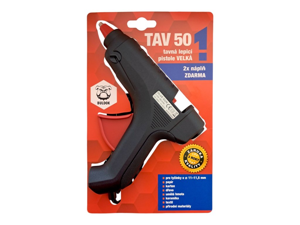 Tavná lepicí pistole s garancí kvality (3 roky), příkonem 55 W pro tavné tyčinky o průměru 11,0 - 11,5 mm balená v plastovém blistru. Spolehlivá a kvalitní tavná lepicí pistole s prodlouženou zárukou 3 roky.Ideální pro Vaše kreativní práce, opravy dětských hraček, umožňuje zalepit netěsnosti, přilepit koberce do aut a další. S touto pistolí slepíte bez problémů papír, karton, dřevo, umělou hmotu, keramiku, textil a přírodní materiály.