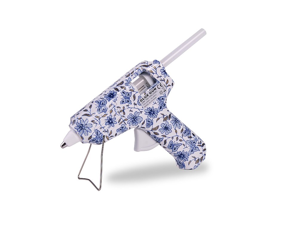 Kvalitní designová tavná lepicí pistole s krásným květinovým vzorem a prodlouženou zárukou na 3 roky. Určená pro tavné tyčinky o průměru 7mm. Pistole jak dělaná pro vaše kreativní tvoření :)Kvalitní a spolehlivá pistole, nyní s prodlouženou zárukou na 3 roky. Výborně lepí dřevo, umělou hmotu, textilie, papír, lepenka, keramika, některé kovy, apod., stejně tak na předměty, které praskly při užívání. Lepicí pistoli je možno použít i na materiály odolné povětrnostním podmínkám, umožňuje zalepit netěsnost vědra, umyvadla, popřípadě okna. Ideální pro lehké užitkové práce - lepení židlí, nábytku, koberců do aut, dlaždic, pletiva, hraček, rozbitých dekoračních předmětů atd., nebo k lepení předmětů i na místech, která jsou vidět a záleží u nich na vzhledu.