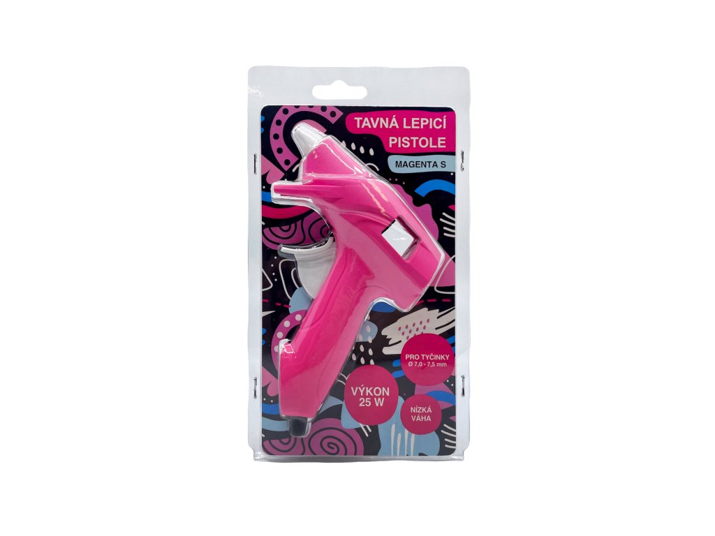 Designová tavná lepicí pistole s příkonem 25W. Určená pro tavné tyčinky o průměru 7,0 - 7,5 mm. Estetické lepení různých materiálů, jako např. dřevo, některé kovy, umělá hmota, textilie, papír, lepenka, keramika apod., stejně tak na předměty, které praskly při užívání. Lepicí pistoli je možno použít i na materiály odolné povětrnostním podmínkám, umožňuje zalepit netěsnost vědra, umyvadla, popřípadě okna. Ideální pro menší užitkové práce - lepení židlí, nábytku, koberců do aut, dlaždic, pletiva, hraček, rozbitých dekoračních předmětů atd., nebo k lepení předmětů i na místech, která jsou vidět a záleží u nich na vzhledu.Charakteristika: