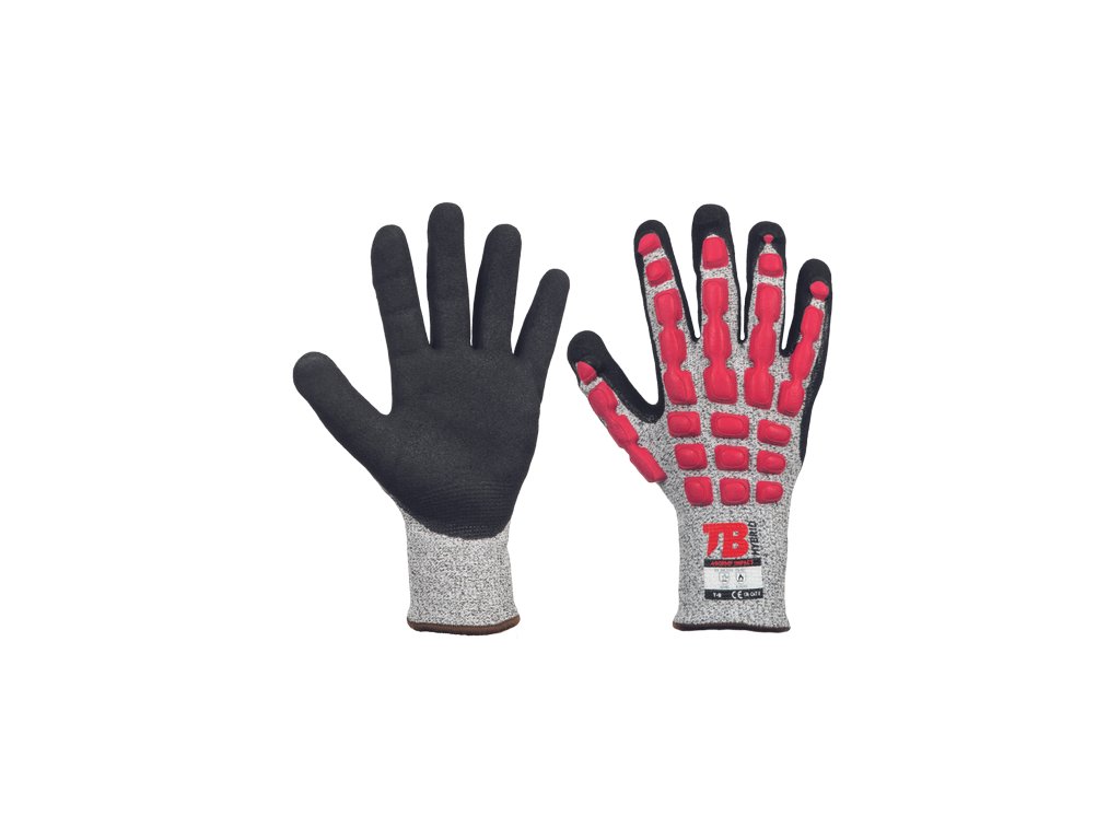 • šedé bezešvé HPPE rukavice • černý mikroporézní nitril • červená latexová ochrana na hřbetu rukavic proti nárazům • pletená manžeta • hustota úpletu 13 GGDoplňkové parametry