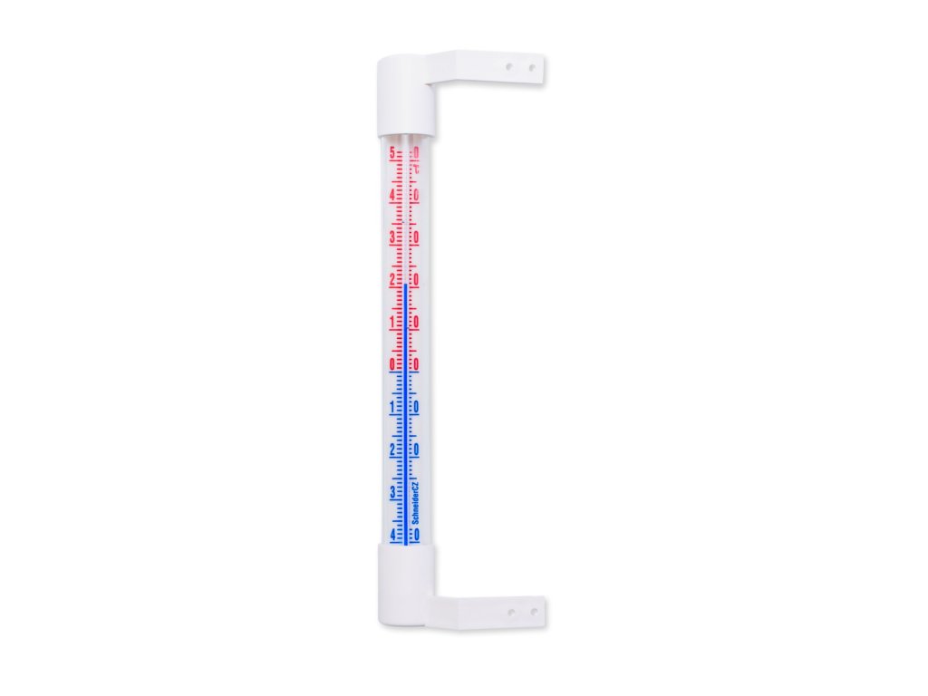 Klasický okenní teploměr, plastové úchytky, výška 200 mm x průměr 20 mm. Přichycení - pomocí šroubků.
