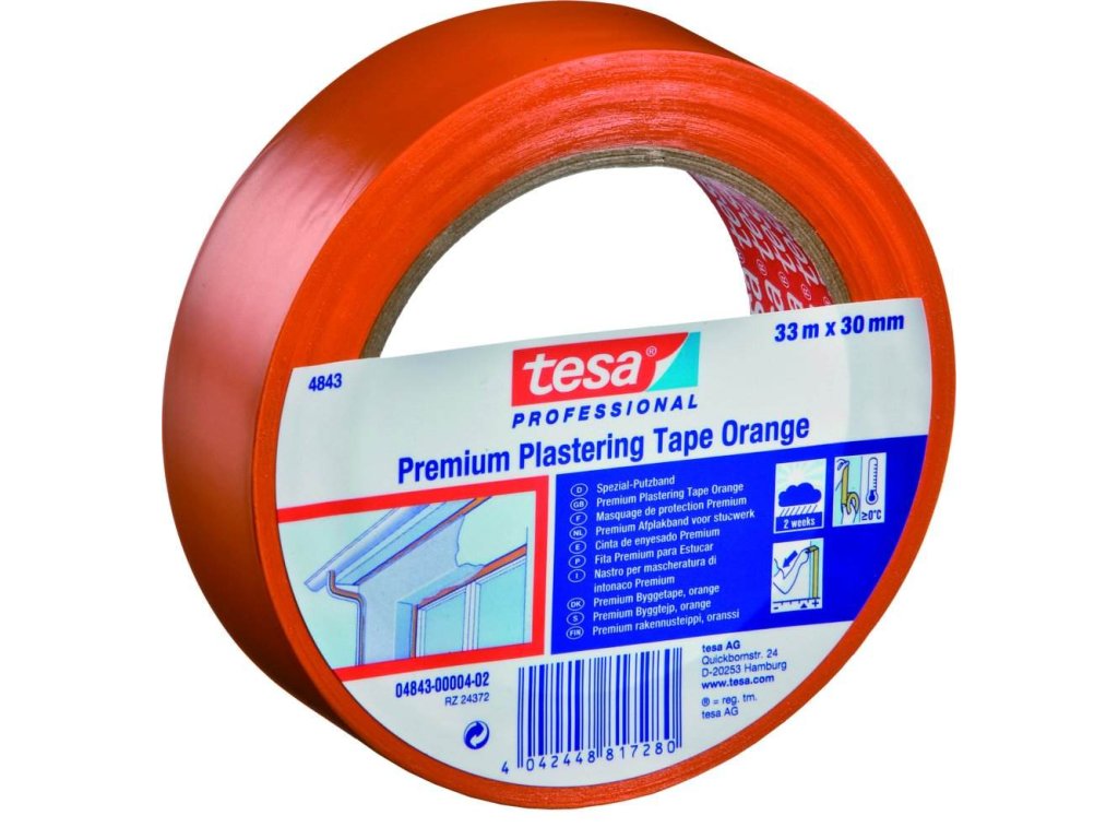 Plastová omítací páska na hrubé podklady, UV odolnost 2 týdny. Tesa® 4843 je speciálně vytvořená páska z měkčeného PVC s rovným nosičem, s nízkou odvíjecí silou a vysokou přilnavostí. Díky měkkému nosiči a tenké vrstvě lepidla je vhodná na použití na drsném povrchu. Páska vydrží vlhkost, slabé alkalické roztoky, kyseliny a řadu dalších chemických látek. Po použití může být snadno odstraněna do 2 týdnů při venkovním použití bez zanechání zbytků. Vhodná pro maskování během omítání, malování, sádrování, zednických a štukatérských pracích. Chrání citlivé povrchy profilů a obkladů proti nečistotám a poškození před výrobními nástroji a materiály. Je vhodná také pro uzavírání pytlů, obalů těžkých zásilek a dalších. Pásku lze použít pro teploty nad 0°C.Doplňkové parametry