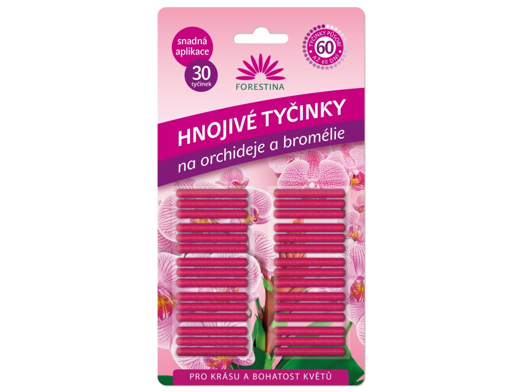 Hnojivové tyčinky pro krásu a bohatost květů mají univerzální použití s příznivým vlivem na pěstované rostliny - jsou vhodné pro všechny druhy orchidejí a bromélií, které se pěstují v květináčích. Pro komplexní hnojení doporučujeme aplikovat Listovou výživu na orchideje a bromélie + Kapku na orchideje a bromelie.