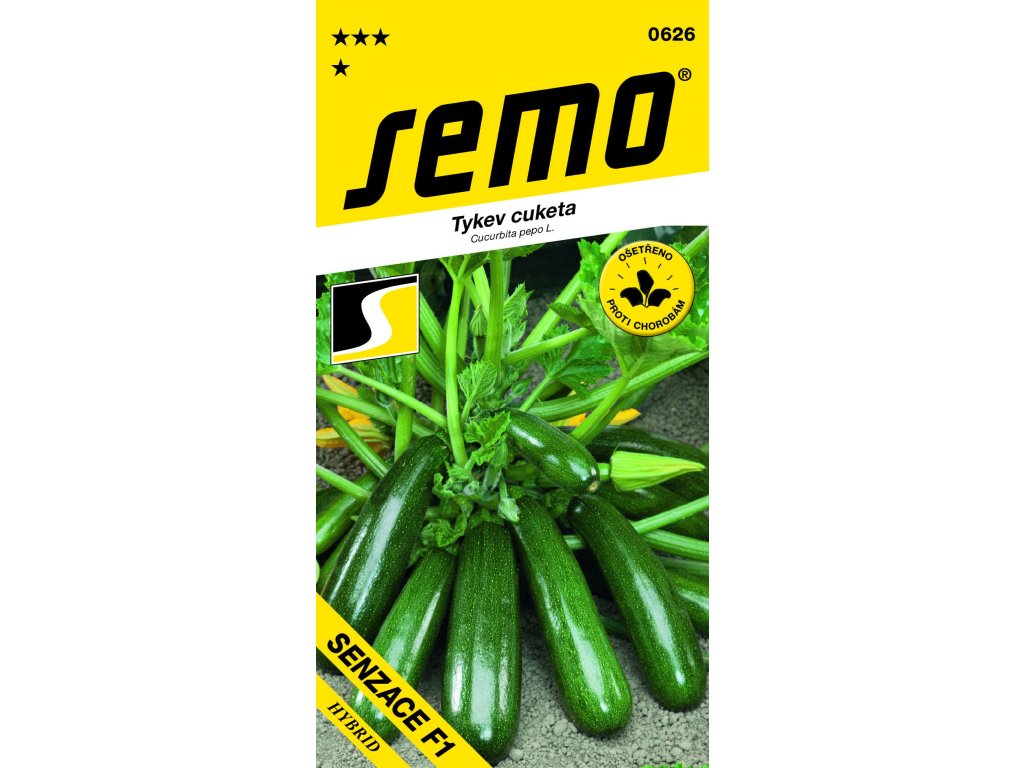 SENZACE F1 SM (kód 0626) - velmi výnosná cuketa s kratšími válcovitými, tupě zakončenými plody středně zelené barvy s jemně síťovanou slupkou o délce
